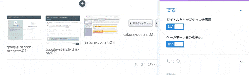 ギャラリーモジュールではコンテンツに下記を設定できます。