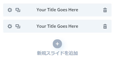 新規スライドを追加では、複数のスライドを追加できます。各スライドには様々な設定が可能です。設定できる内容は「広告モジュール」と似ています。