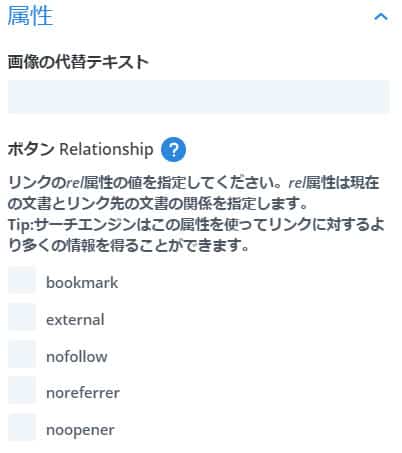 属性の設定の ボタン Relationship はスライダーモジュールのものと、スライドのものの2種類あります