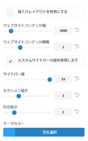 となっています。設定をカスタマイズすると、サイトのプレビューに反映され、確認することができます。また下部には、プレビュー表示を切り替えることのできるアイコンが配置されます。