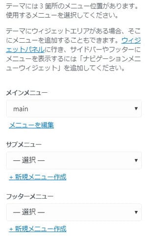 ヘッダーとナビをクリックすると、下記の項目が表示され、