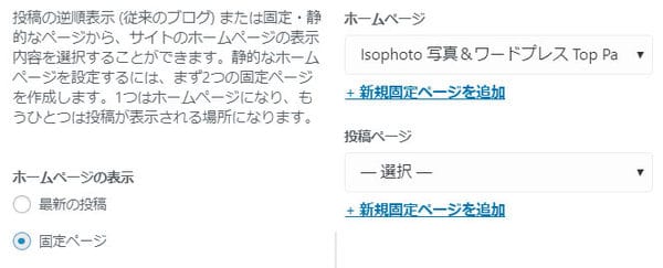 固定ページを選択した場合は、どれか一つの固定ページ、あるいは、投稿ページから選べます。