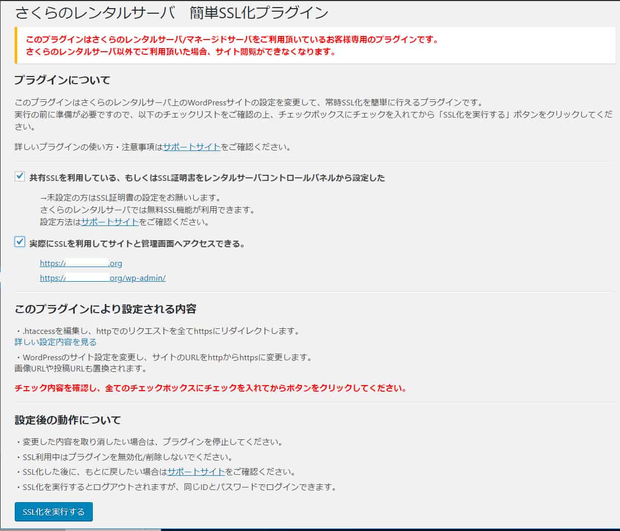 「SSL化を実行する」をクリックします。