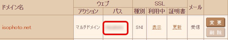 ドメインのリスト表示画面でも、パスが入力した値に変わります。