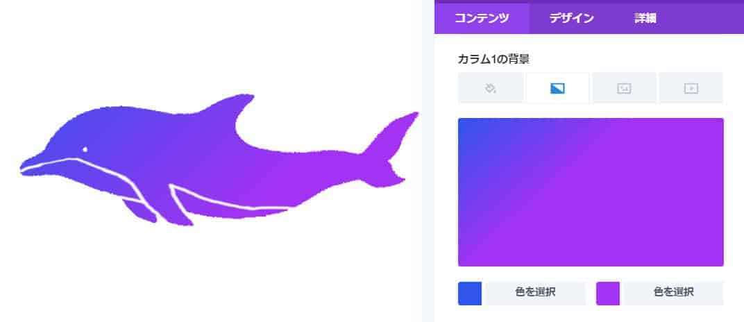 | 「色を選択」をクリックしてグラデーションとしたい2色を選びます。※後でも変更できます。 |