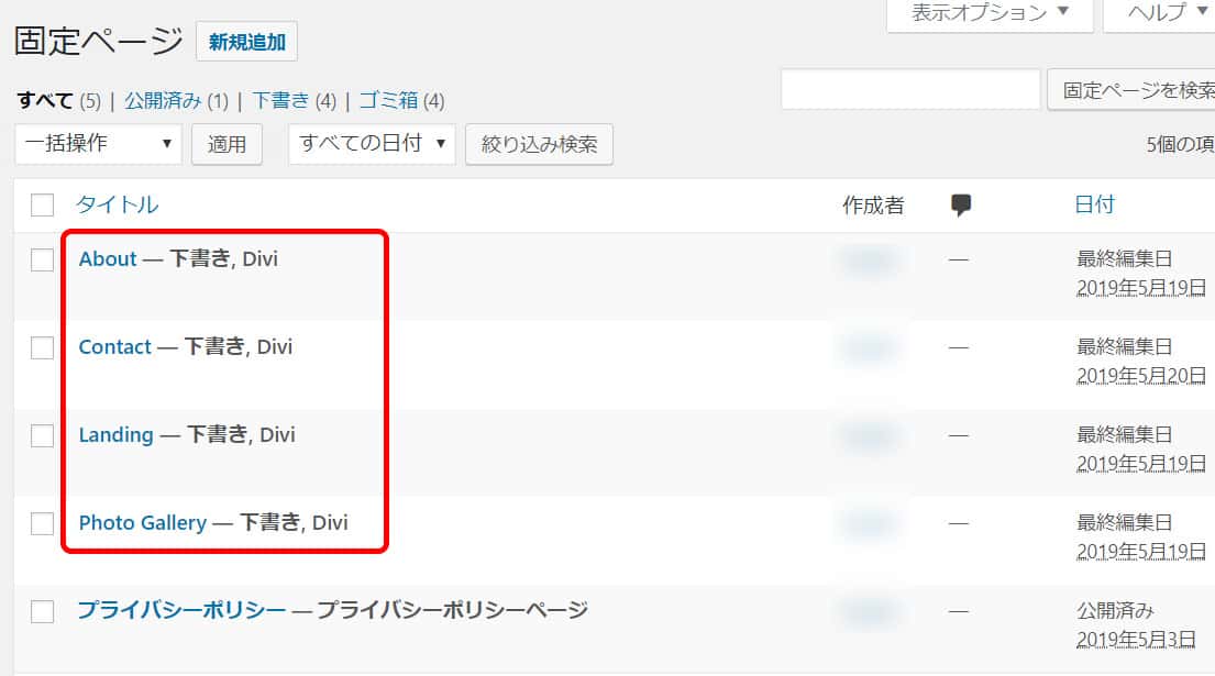 ページをまとめて公開に設定するには、先ほどまでで作成し下書きを保存したページを表示します。