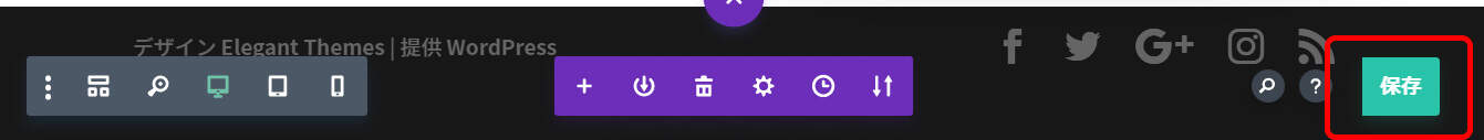 Divi Builder の編集画面では、ページの最下部に下記のように紫丸「・・・」が表示されているので、それをクリックします。