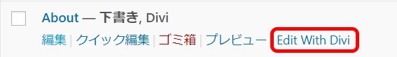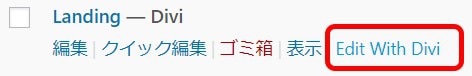あるいはリスト表示の画面で「 Edit Width Divi 」をクリックしても、Divi Builder で編集画面にできます。