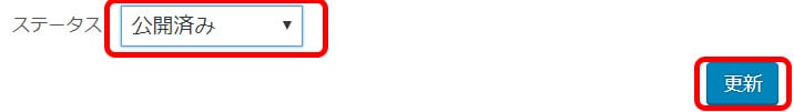 「ステータス」を「公開済み」に変更し、「更新」をクリックします。