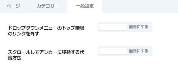 下記のパネルが表示されるので、それぞれGeneral、Navigation、ビルダー、Layout、Ads、SEO、Integration、Updatesをタブで切り替えて選択し表示させることができます。